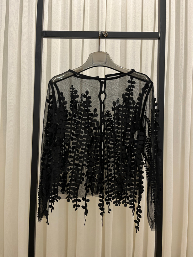 ست مشکی تور و دامن اپلیکدار – طراحی خاص با برگهای برجسته و دوخت هنری