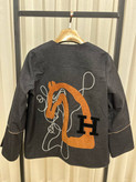 کت خاص خاکستری تیره با طراحی منحصربهفرد پشت — طرح اسب و حرف H با الهام از سبکهای اشرافی 🐴